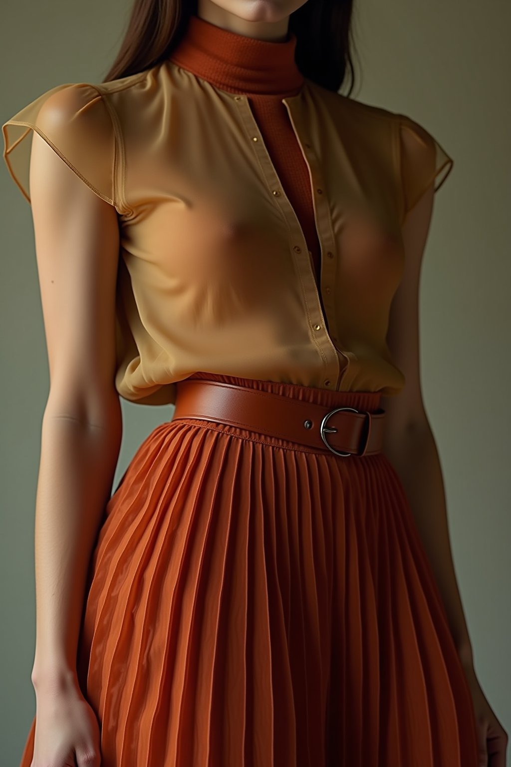 AW26の最大の特徴は、ブラックの絶対的台頭だ。抑制美(quiet luxury)と実験的テーラリングの二極化が、イタリアらしい戦略性を示す。Bottega Venetaの洗練されたレイヤリングは、シアーなブラックオーガンジーとヘビーウェイトのニットを重ね、シルエットの奥行きを生む。これを日常に活かすなら、ミディ丈のAラインスカートにオーバーサイズのタートルネックをイン。足元はポインテッドトゥのローファーでグラウンディングし、アクセサリーはシルバーのチェーンで控えめに光を加える。Jil Sanderのような実験派は、テーラリングのエッジを効かせたブラックスーツを提案。パンツのクロップド丈で足首を露わにし、ブーツとのコントラストでモダンに。素材選びではサステナブルなフェイクファーやリサイクルレザーが目立ち、環境意識の高まりを反映。パリのショールームでデザイナーと語らった限り、これらはクチュール仕立ての耐久性を保ちつつ、ドライクリーニング不要の機能性を備えている。