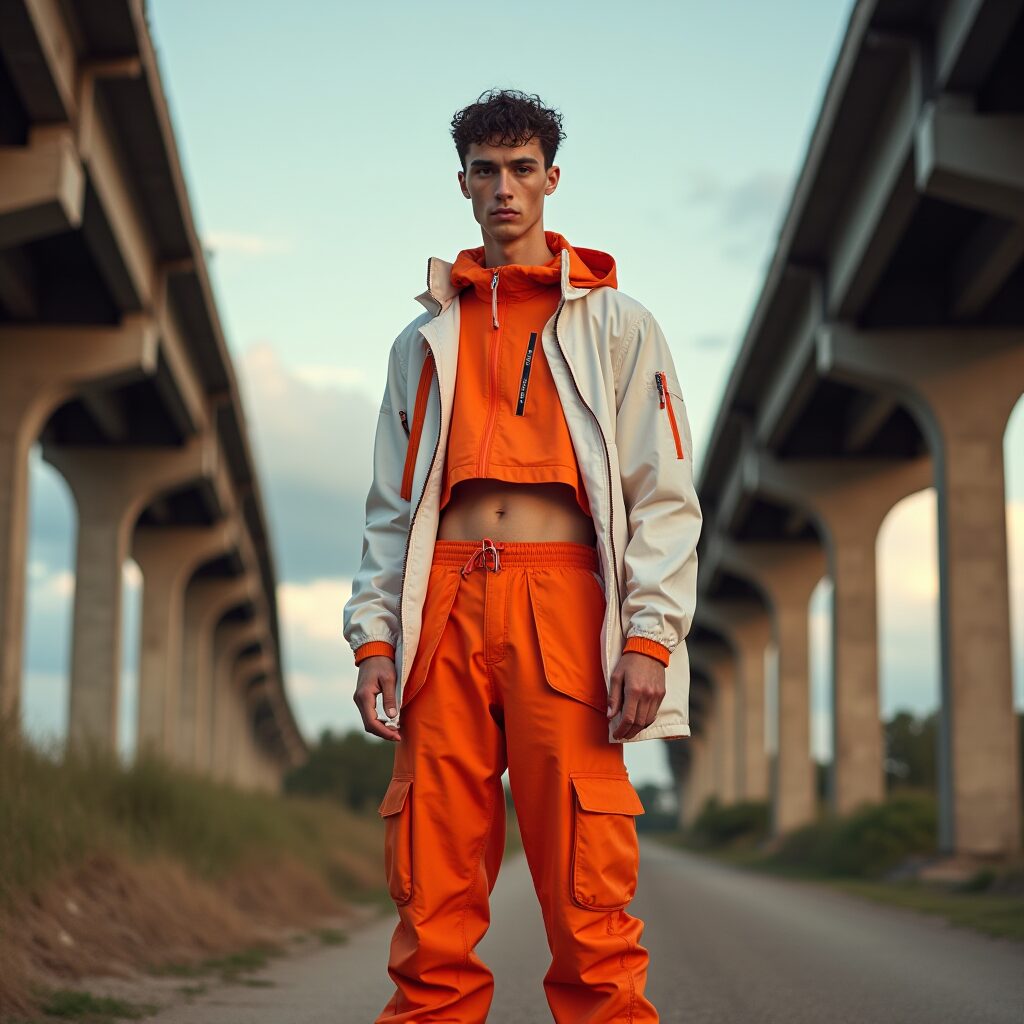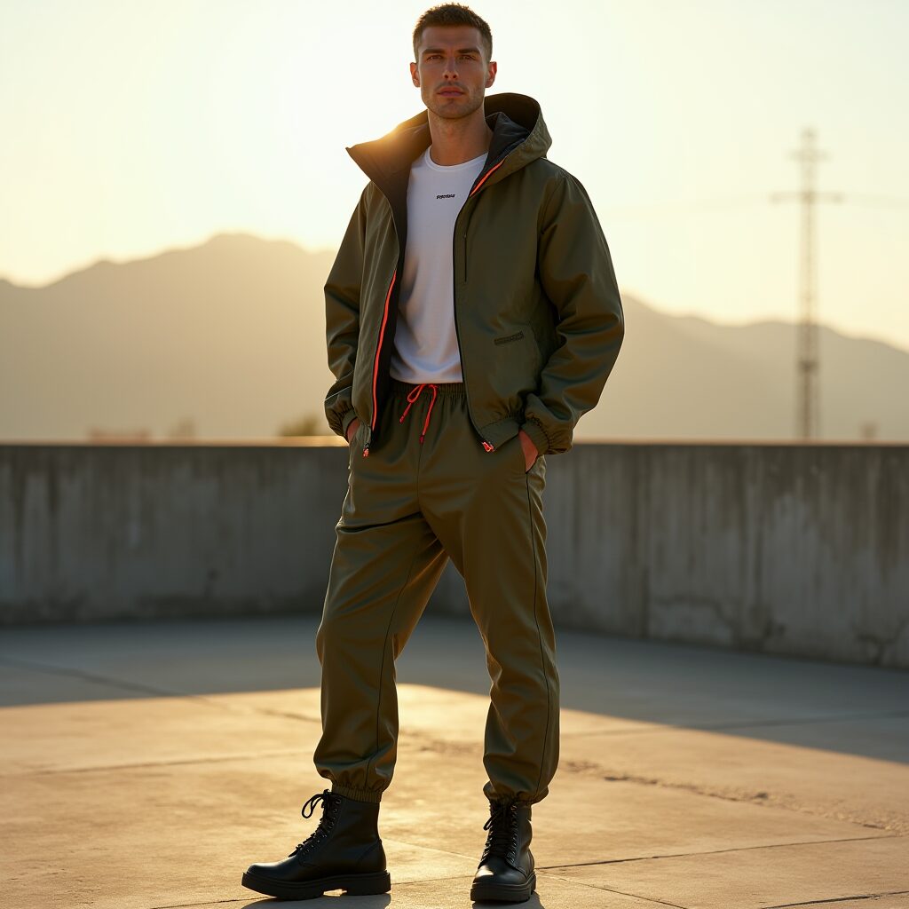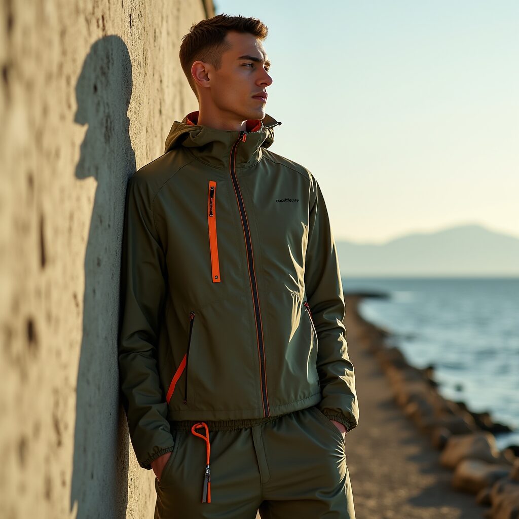 キーアイテムとしてシューズが台頭している。New BalanceやSalomonのGTXモデル、Reebok ZIG KINETICAのようなワイドフィットトレイルスニーカーは、ビブラムソールによるグリップと防水性を街着に落とし込み、シルエットをシャープに引き締める。私のデザイン哲学では、これをベースにPertex Shieldの軽量シェルパーカーをレイヤリング。オリーブ基調のシェルにテクニカルオレンジのアクセントを効かせ、ドローコードをアクセサリーのように垂らすことで、機能性をモードに変換する。