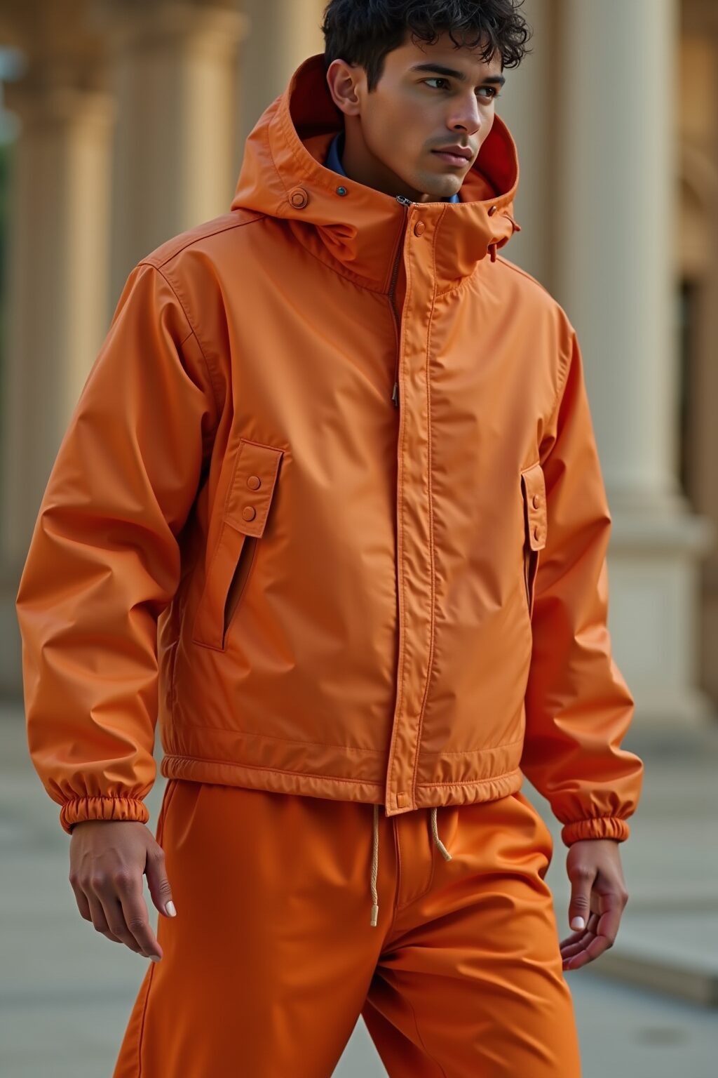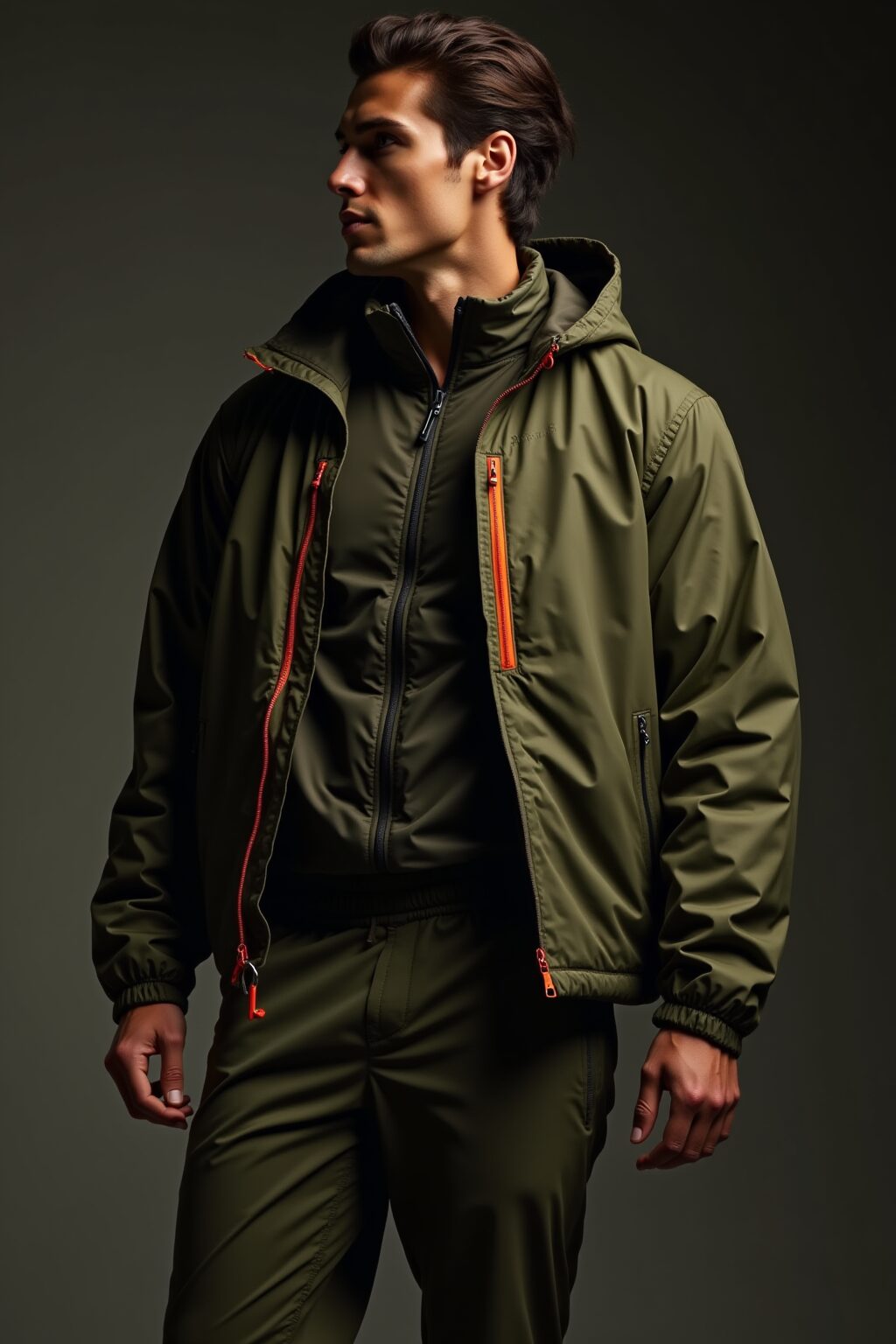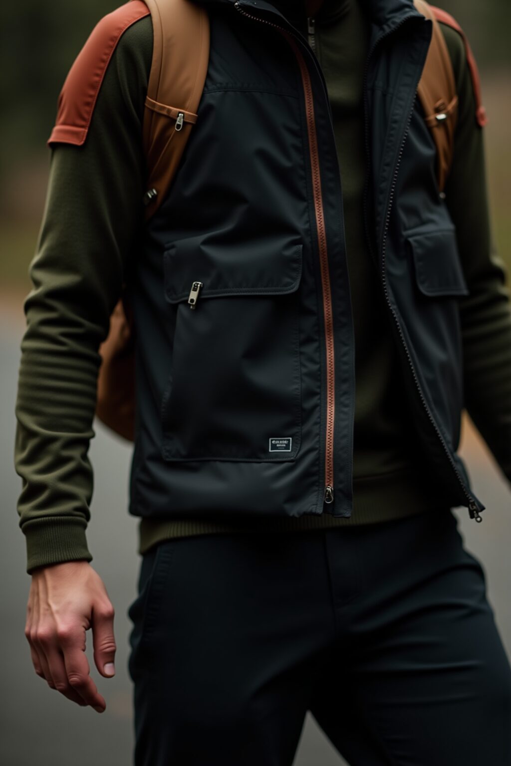 キーアイテムとしてシューズが台頭している。New BalanceやSalomonのGTXモデル、Reebok ZIG KINETICAのようなワイドフィットトレイルスニーカーは、ビブラムソールによるグリップと防水性を街着に落とし込み、シルエットをシャープに引き締める。私のデザイン哲学では、これをベースにPertex Shieldの軽量シェルパーカーをレイヤリング。オリーブ基調のシェルにテクニカルオレンジのアクセントを効かせ、ドローコードをアクセサリーのように垂らすことで、機能性をモードに変換する。