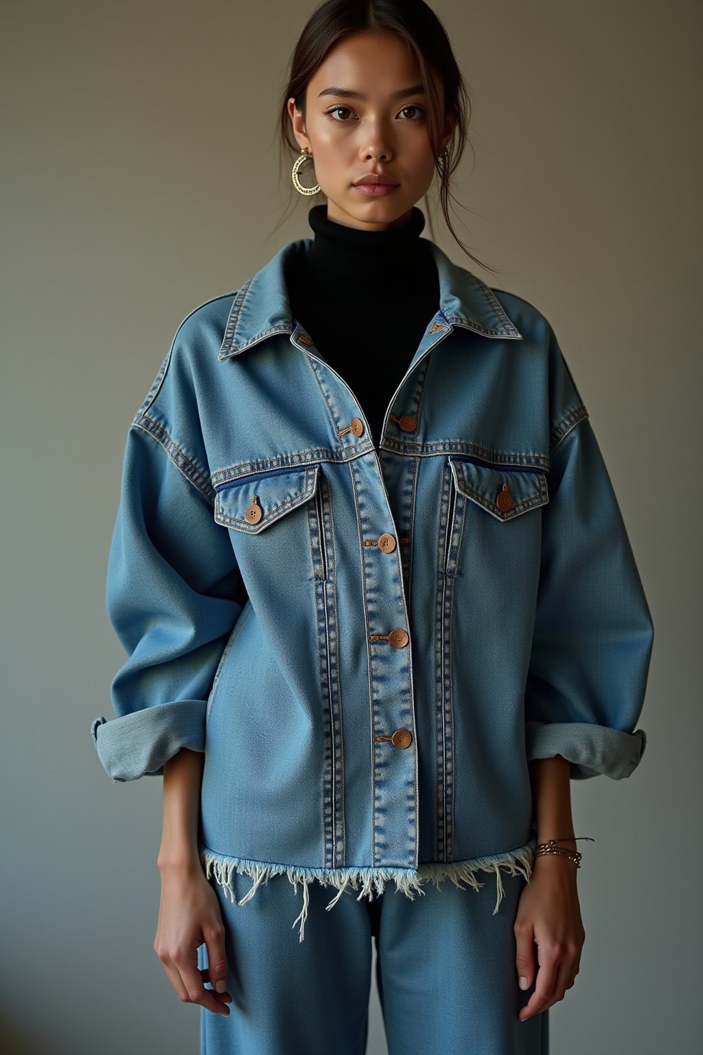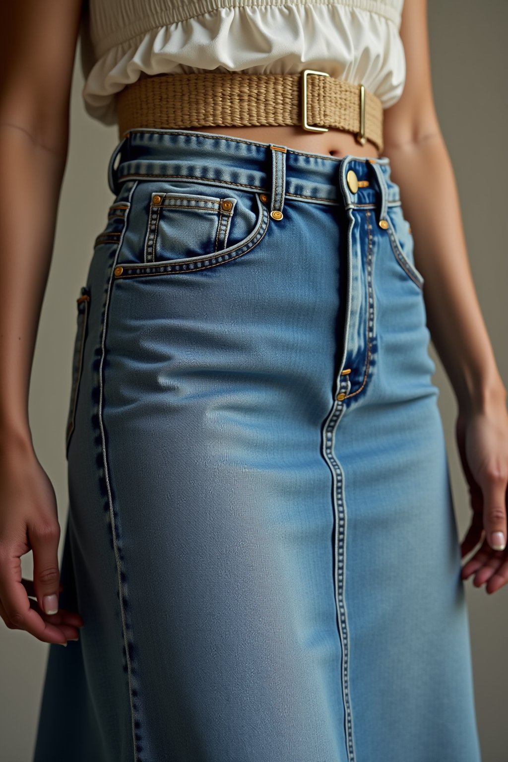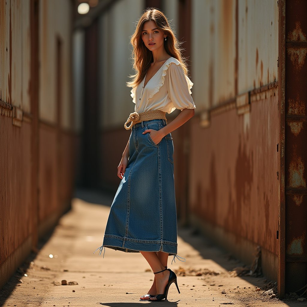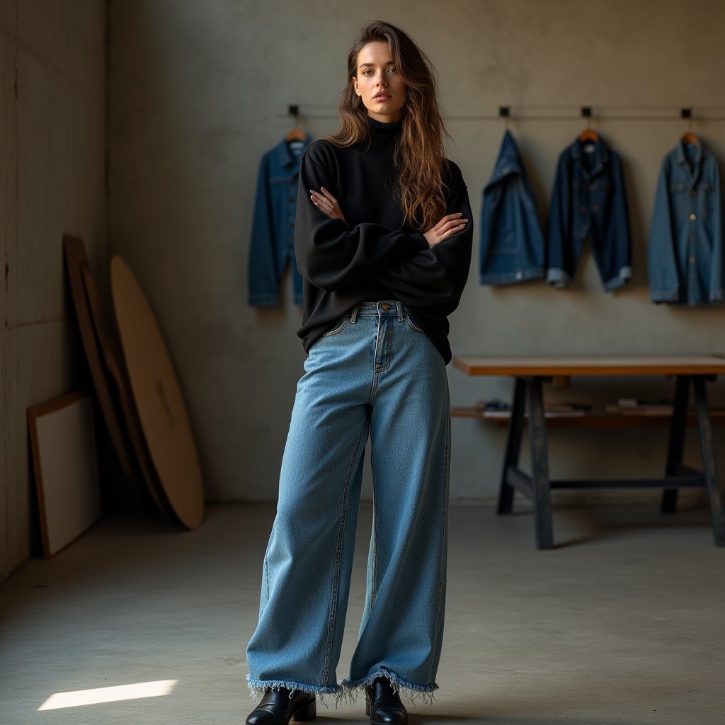 加工面では、ヴィンテージ再現エイジングやクラッシュが二極化を起こしている。9年落ちの風合いを高精度で模したものは、プロの職人目線でも驚異的で、ストーンウォッシュの温度微調整(例えば58度で抑える)で自然な色落ちを実現。ポリエステル混やジャカード織りの機能性デニムも増加し、耐久性と立体感が日常使いを後押しする。私工房では、テキサス産綿の力強さとジンバブエ産の柔らかさをブレンドし、ポリ5%混で伸縮性を加えたバギースキニーを試作中だ。これをオーバーサイズのデニムジャケット(15オンス、ブラックウォッシュ)と合わせ、メンズモデルに。女性側は淡色インディゴのデニムスカート(10オンス、ノーウォッシュ)にニットトップをレイヤードし、非デニムのサテンスカーフでアクセントを。
