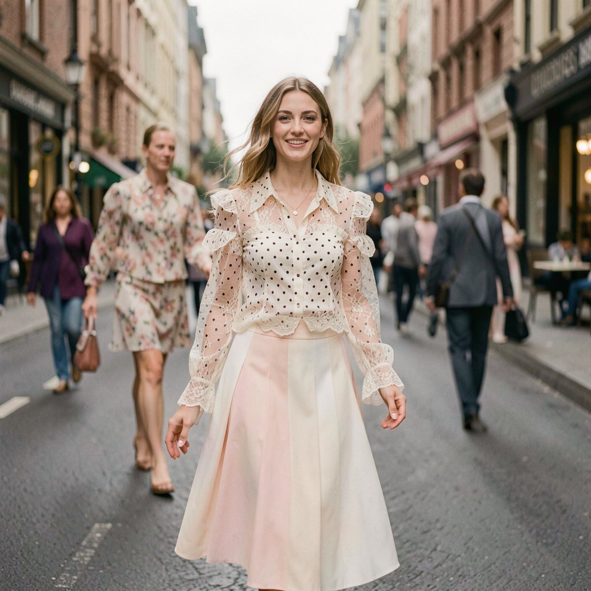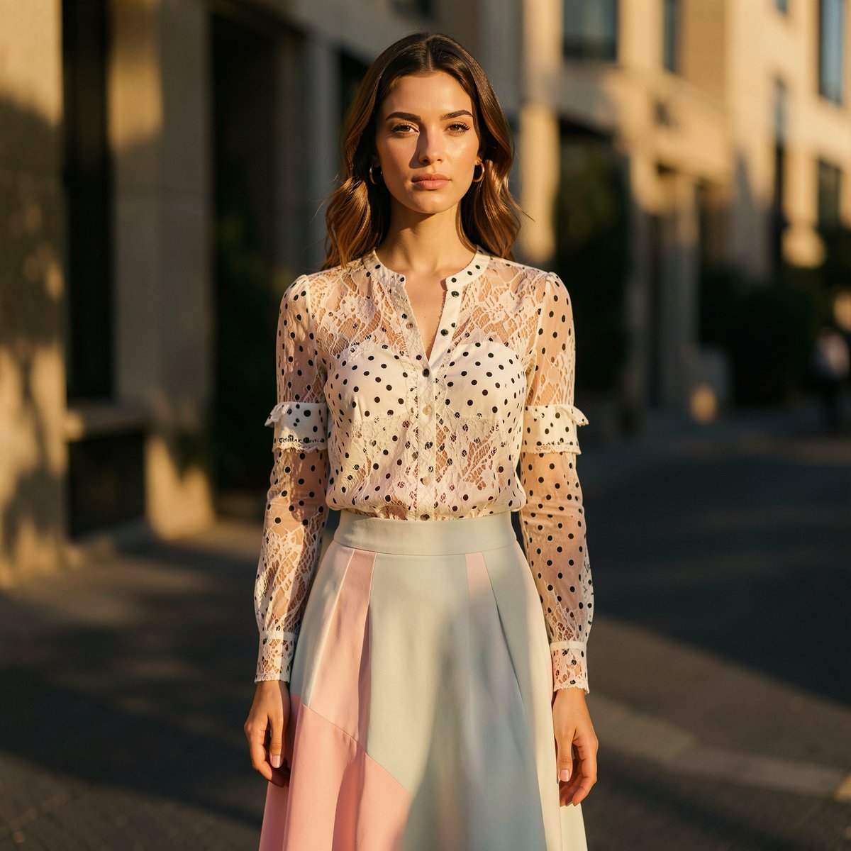 - **注目トレンド1: レース・ドット柄のフェミニンアイテム**