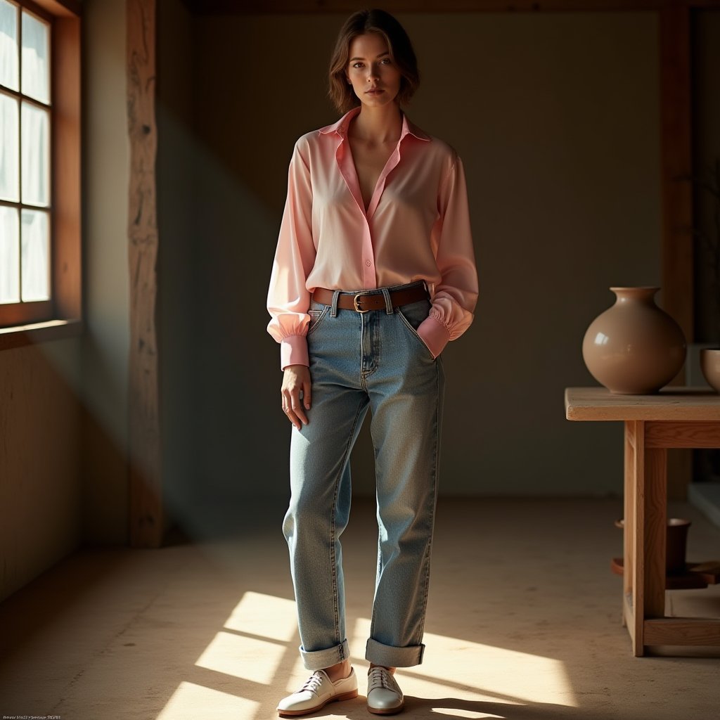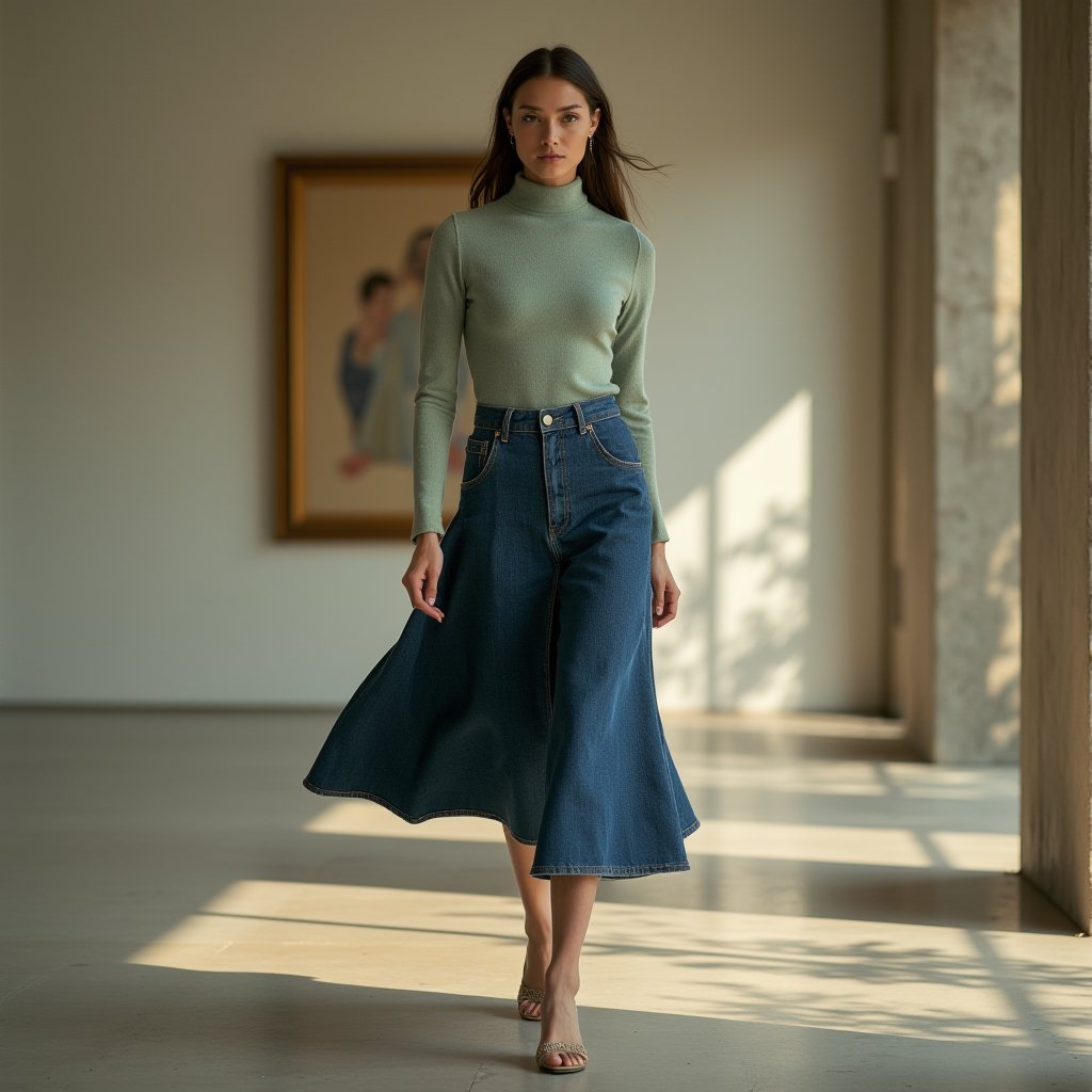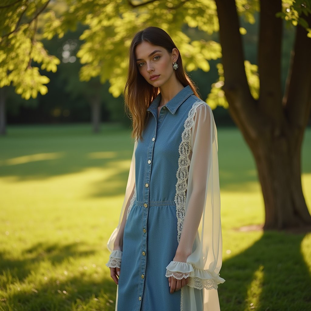 スタイリング提案として、ハイウエストバレルデニムにレースブラウスをイン。デニムの打ち込み本数を細かく調整した生地なら、立体感でヒップを自然に持ち上げ、透け感トップスとのレイヤードでフェミニンにシフト。パステルベージュトレンチを羽織れば、80sレトロのミニスカ要素を現代的にアップデート。シルエットは引き算の極みで、肩の1mm落としや裾の微カーブが「その人らしさ」を引き出す。カットソーも岡山ネットワークのコーマ糸で質を上げ、経年変化まで設計すれば「時間のデザイン」が宿る。